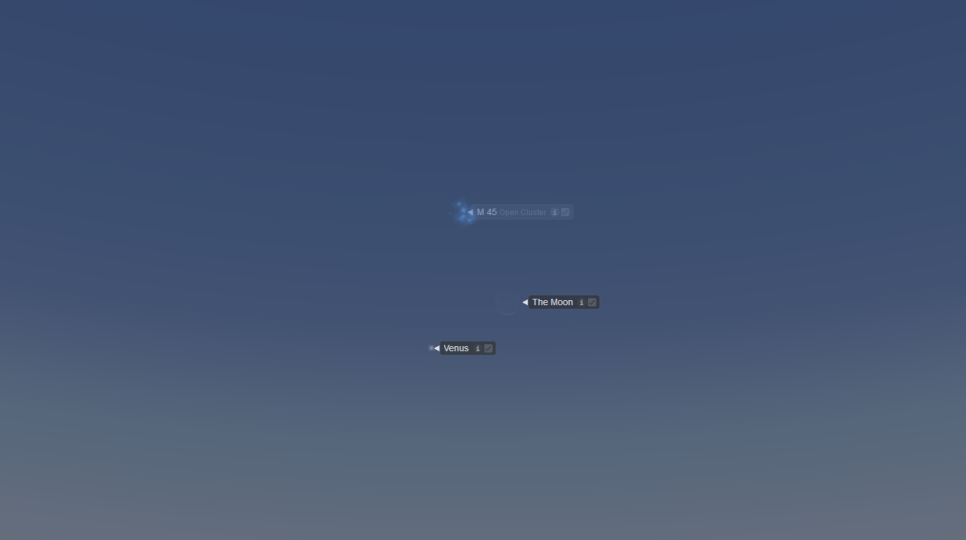 가장 밝게 빛나는 별처럼 보이는 천체를 찾아보세요.